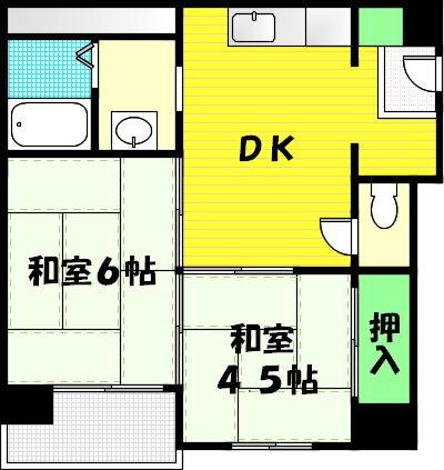 | 専有面積 | 45m2 | 間取り | 2DK |