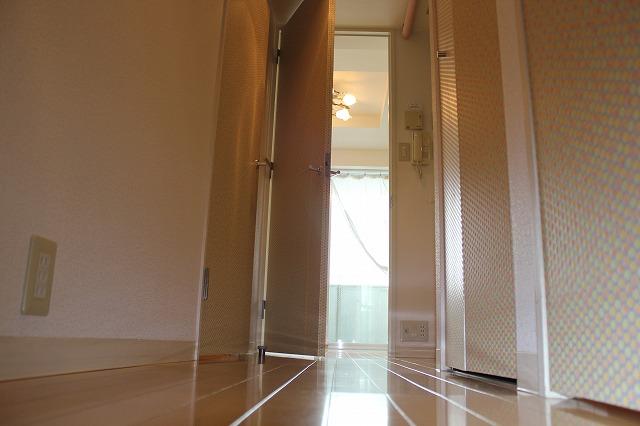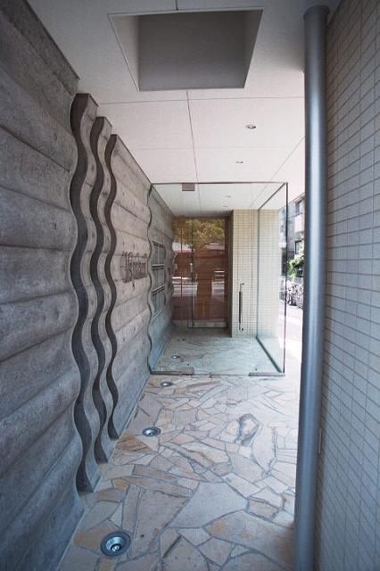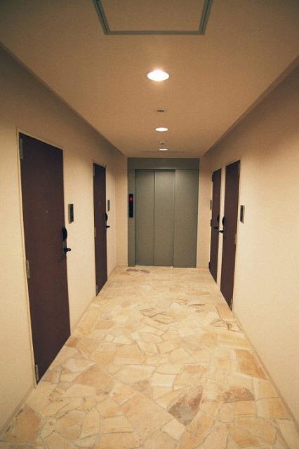 石張りの床と天井の間接照明でホテル風のエントランスがお洒落です:)